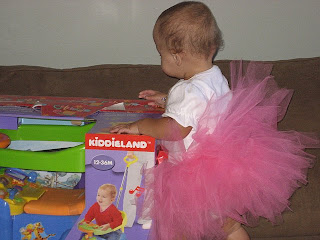 Charlotte's first birthday party was a huge success. The party began at 2 while she was napping. At about 2:20 I heard her making some noise so Alyssa and I immediately went into her room and put her birthday tutu on her. We marched her out in front of all the guests and boy did she make a sour face. I think she was wondering what all the people were doing in her house!