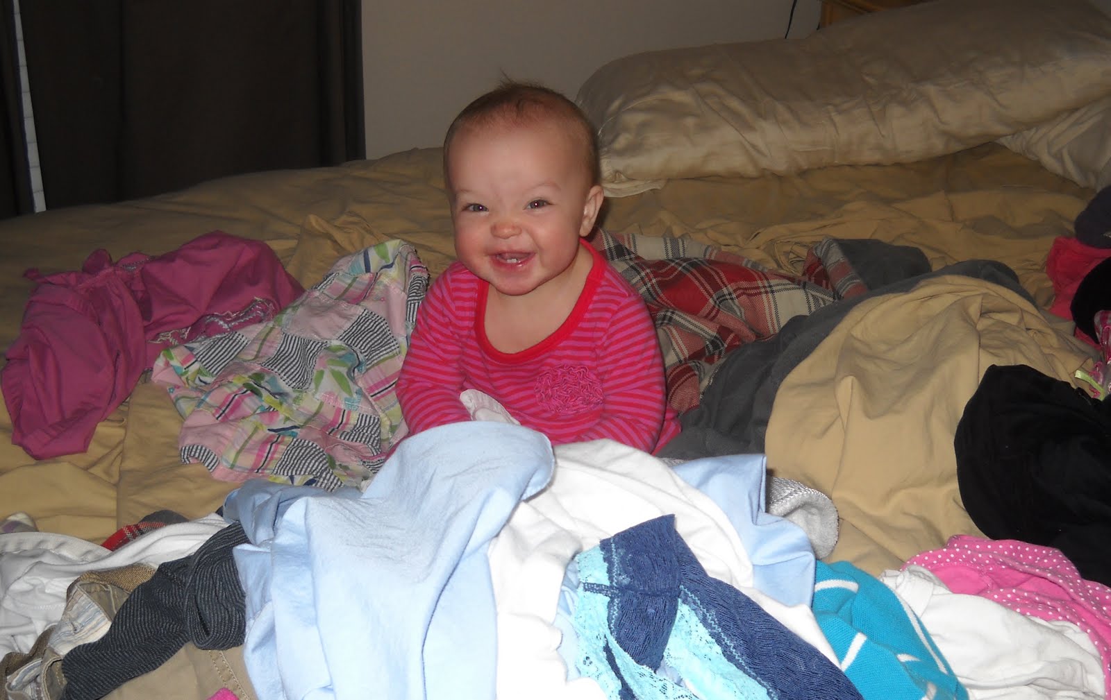 For at least a few weeks she has also been using her rolling skills to get herself where she wants to go. On quite a few occasions I witnessed her laying down, rolling over and then sitting back up near a new toy. It seems like it would be easier to crawl but she seems to enjoy the rolling. Being able to sit up on her own from a laying position has been an interesting skill because it means that she can do this while in her crib. It took her a while to stop practicing her sitting up skills when it was time for bed! She would be so tired and when I would lay her down she would roll over, sit up and cry. Finally she realized that she could lay back down and go to sleep. I do love coming in to get her in the morning now because she pops her little head up and then promptly sits up and grabs her blankey and waits for me to come get her.